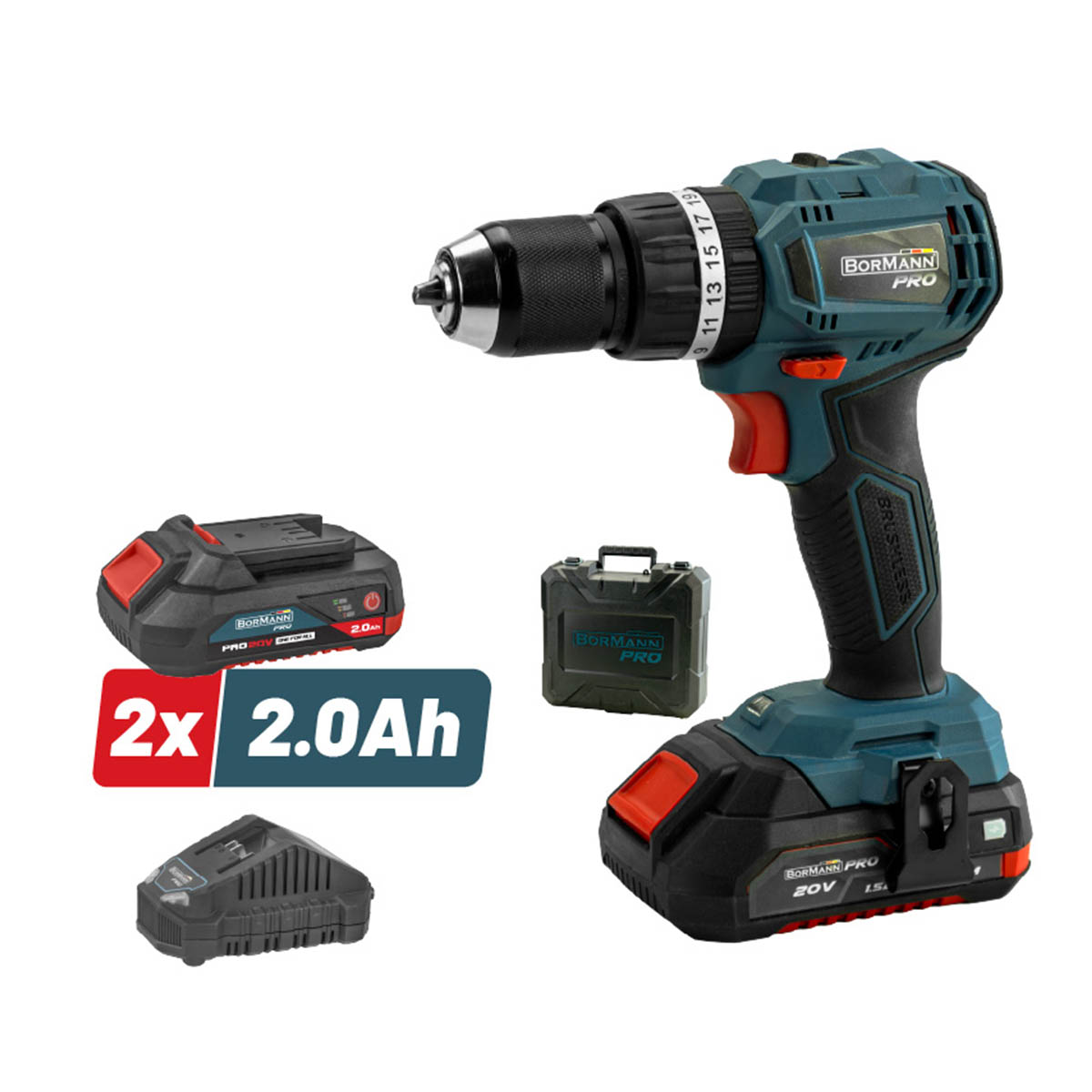 Bormann - BBP5144 Κρουστικό Δραπανοκατσάβιδο Μπαταρίας Compact 20V Li-Ion Brushless σε Βαλίτσα μεταφοράς (2x2.0Ah)