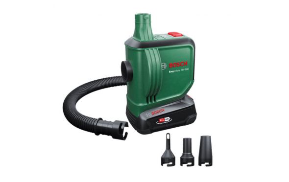- Η αντλία αέρα μπαταρίας EasyInflate 18V-500 της Bosch με μέγιστη ροή αέρα 530 λίτρα/λεπτό φέρνει ένα νέο επίπεδο ταχύτητας και άνεσης στο φούσκωμα και ξεφούσκωμα παιχνιδιών πισίνας, φουσκωτών σκαφών, στρωμάτων αέρα και άλλων αντικειμένων μεγάλου όγκου.