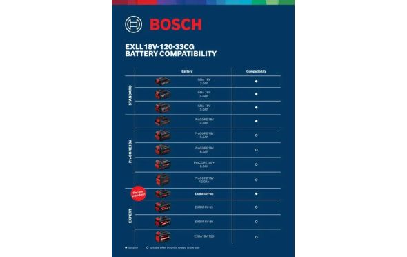 - Συνίσταται η χρήση με μπαταρία 18V Expert EXBA18V-40 ( δεν είναι συμβατό με μεγαλύτερη χωρητικότητας μπαταρίες από GBA 5.0Ah).