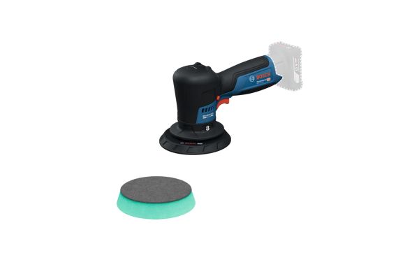 - Το GPX 12V-125 διαθέτει ένα επίθεμα στίλβωσης 125 mm και ένα γερμανικό κλειδί για εύκολη αλλαγή επιθέματος.