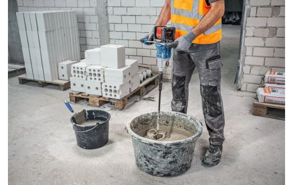 - Μπορείτε να χρησιμοποιήσετε αυτό το πολύπλευρο εργαλείο για την ανάμειξη ενός ευρέος φάσματος υλικών, όπως κονίαμα για το χτίσιμο τοίχων, γύψου για εργασίες ανακαίνισης ή μπετού για θεμελίωση κτιρίων και διορθωτικές εργασίες.