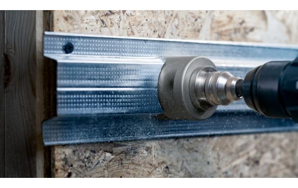 - Προσφέρει αποτελεσματική διάνοιξη με πριόνισμα οπών σε χαλύβδινη επένδυση και γυψοσανίδα.