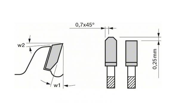 | Γωνία αφαίρεσης υλικού ° w1 5.0 |