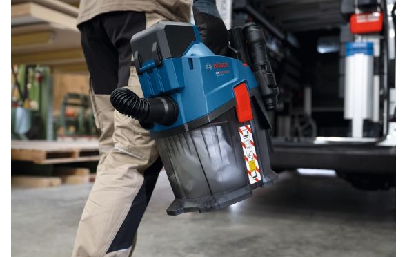 Ο ασύρματος απορροφητήρας σκόνης PRO GAS18V-6LS εγγυάται προστασία από σκόνη κατηγορίας L. Η εργονομικά σχεδιασμένη χειρολαβή, ο ιμάντας μεταφοράς και ο συμπαγής, ελαφρύς σχεδιασμός προσφέρουν εύκολη μεταφορά του.Τα πολλά αξεσουάρ τον καθιστούν ιδανικό για ποικιλία στεγνών εφαρμογών, ενώ αποθηκεύονται απευθείας επάνω στη συσκευή, ώστε να έχετε πάντα το κατάλληλο εξάρτημα άμεσα διαθέσιμο. Ο απορροφητήρας σκόνης διαθέτει λειτουργία eco για μεγαλύτερη διάρκεια λειτουργίας ανά φόρτιση μπαταρίας, λειτουργία boost για μέγιστη ισχύ αναρρόφησης, καθώς και λειτουργία φυσητήρα (ο σωλήνας φυσητήρα διατίθεται ως αξεσουάρ και δεν περιλαμβάνεται στη βασική συσκευασία).Είναι συμβατό με το σύστημα Bosch Click & Clean. Επίσης, είναι συμβατό με το Bosch Professional 18V System...