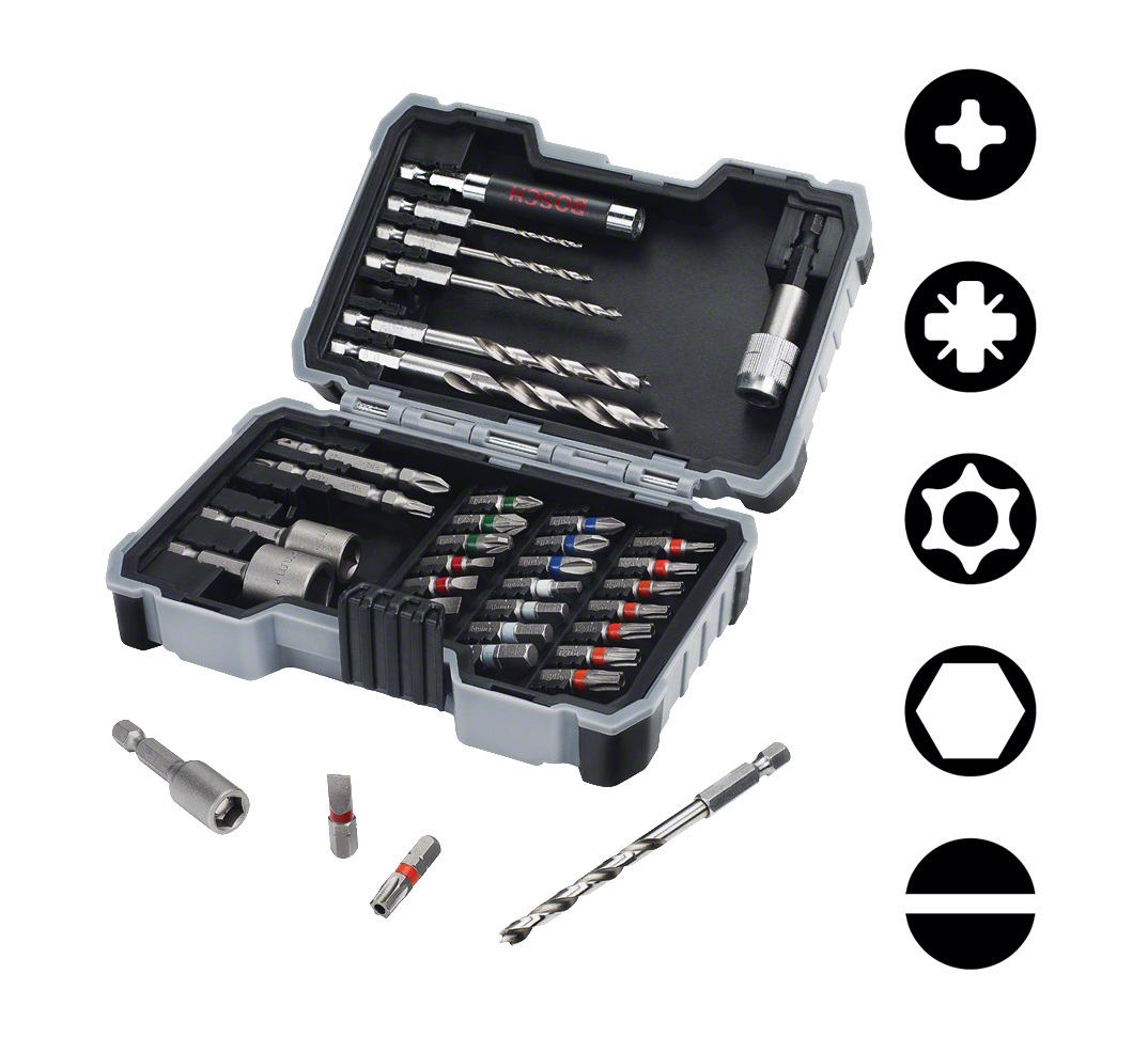 | Περιεχόμενο σετ: PH1, PH2, PH3 / PZ1, PZ2, PZ3 / S 3/4/5/6 / HEX3/4/5/6 / TH10, TH15, TH20 (2x), TH25, TH27, TH30, TH40 / Εξαρτήματα τοποθέτησης περικοχλίων 6/8/10 mm / HSS 2,0/3,0/4,0/5,0/6,0/8,0 mm / Διπλή κατσαβιδόλαμα PH2/PZ2 / Διπλή κατσαβιδόλαμα Th20/Th25 |