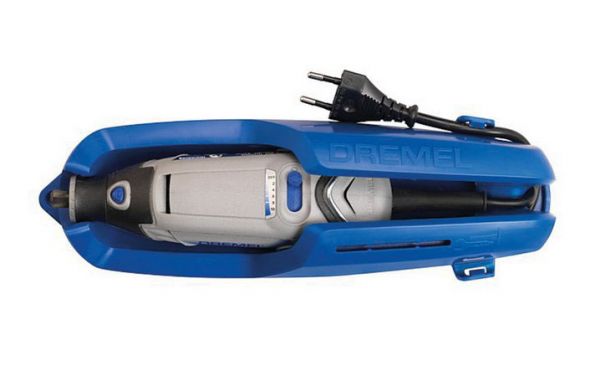 Όλα αυτά είναι συσκευασμένα σε μια άψογα οργανωμένη κασετίνα, που συμπεριλαμβάνει μια αφαιρούμενη θήκη εξαρτημάτων και ένα στήριγμα εργαλείου το οποίο μπορεί να στερεωθεί στον τοίχο και επιτρέπει ένα εύκολο τύλιγμα του καλωδίου του εργαλείου.