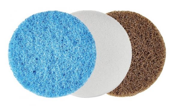 Διαφορετικά επίπεδα σκληρότητας για την απομάκρυνση λεκέδων, υπολειμμάτων και σκληρών βρωμιών από σκληρές επιφάνειες χωρίς γραντζουνιές (μπλε πέλμα), χωρίς τη χρήση σκληρού καθαριστικού (λευκό πέλμα), γρήγορα (καφέ πέλμα).
