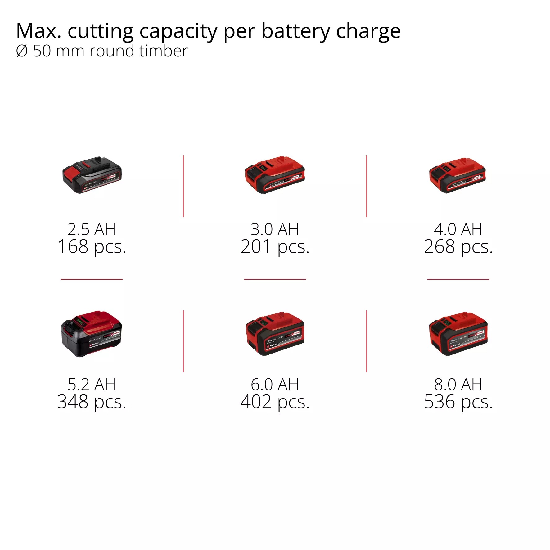 Μέγιστος αριθμός κοπών σε διάμετρο 50mm:2.5Ah/ 168 κοπές, 4.0Ah/ 268 κοπές, 5.2Ah/ 348 κοπές |