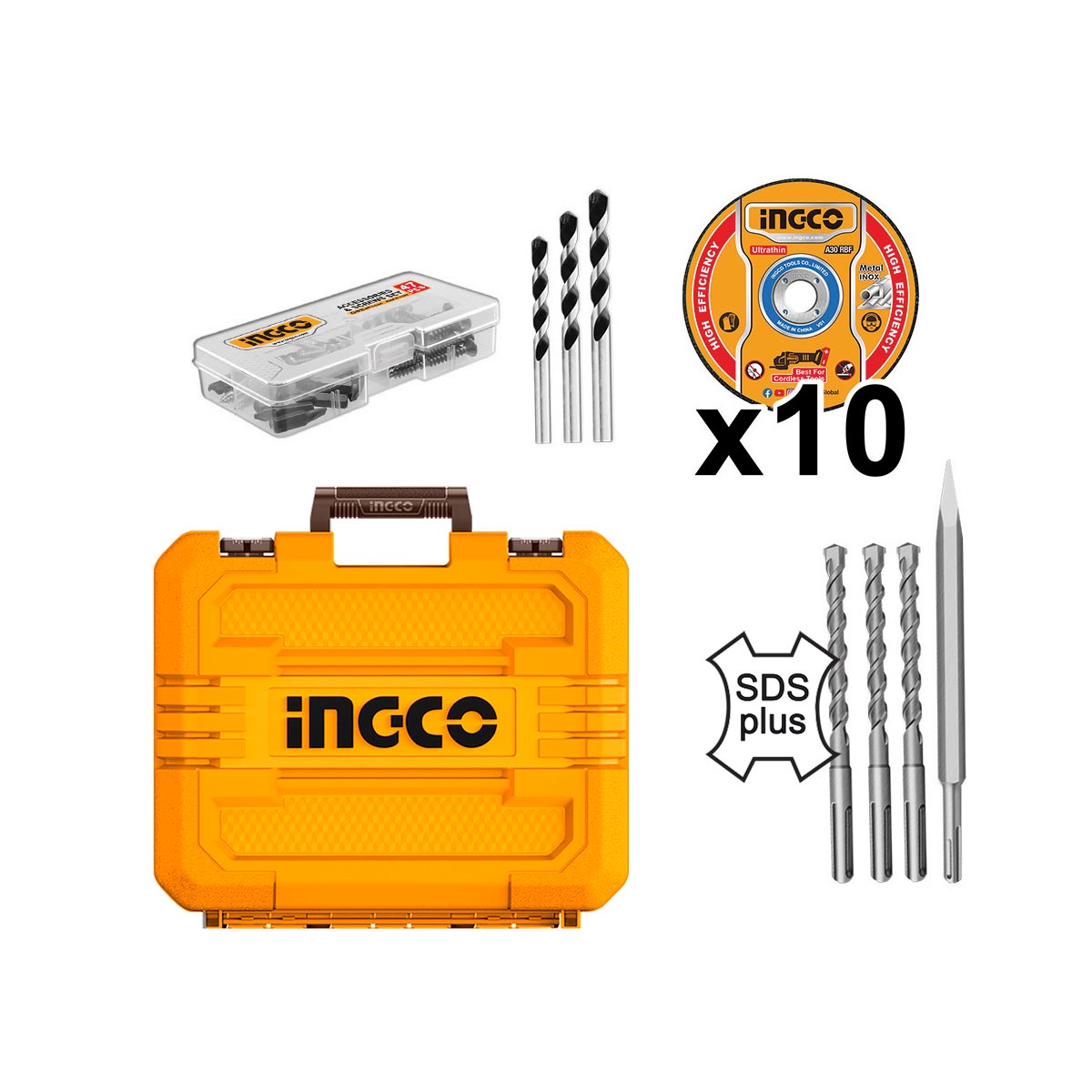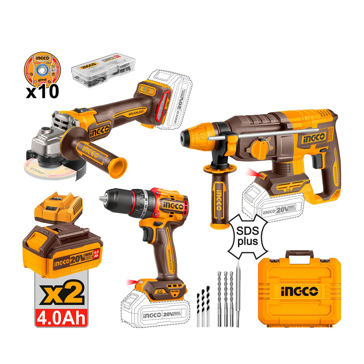 Ingco - COSLI241198E Σετ Κρουστικό Δραπανοκατσάβιδο Γωνιακός Τροχός & Πιστολέτο Μπαταρίας 20V Li-Ion με Εξαρτήματα & Τσάντα (2x4.0Ah)