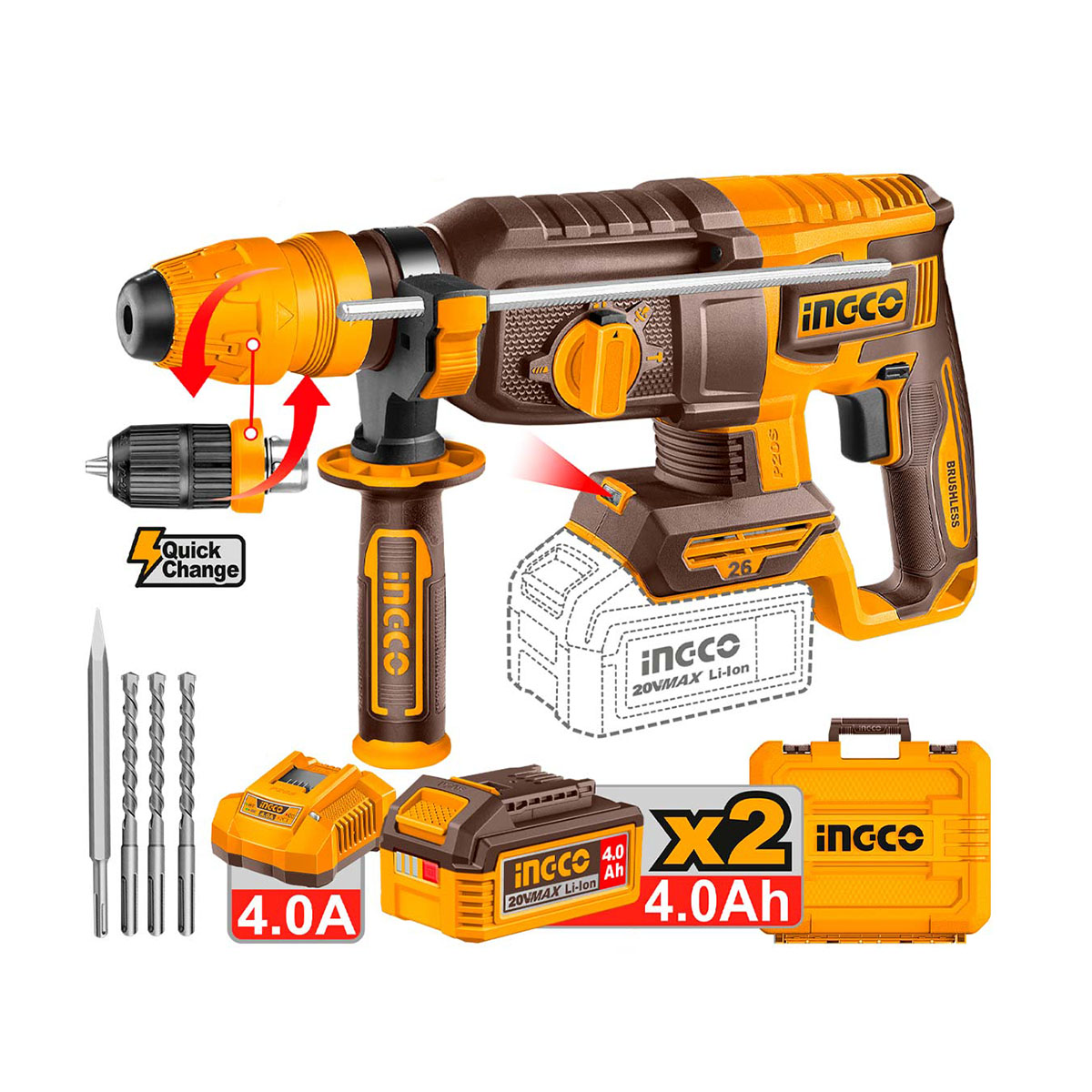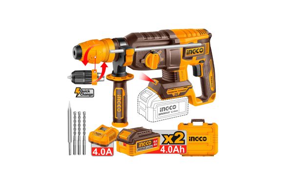 Ingco - CRHLI202689E Πιστολέτο Περιστροφικό Κρουστικό Σκαπτικό Μπαταρίας SDS-Plus Brushless 20V Li-Ion 2.5J - (2x4.0Ah)