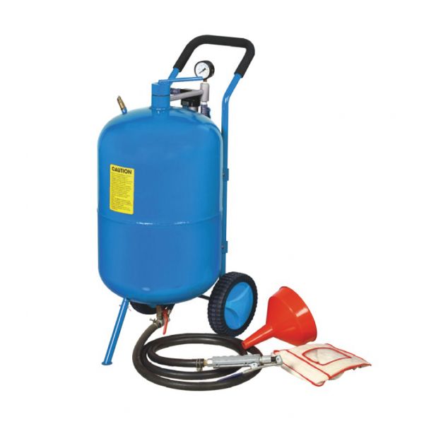 Συνοδεύεται με αναρροφητήρα / συλλέκτη σκόνης, ποδοπεντάλ, ρυθμιστή πίεσης και πιστόλι αμμοβολής με 4 μπέκ Ø6mm (2 τεμ.) και Ø7mm(2 τεμ.).