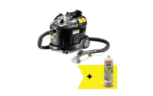 - Η περιορισμένης έκδοσης μαύρη μηχανή ψεκασμού-αναρρόφησης Puzzi 8/1 Go!Further, κατασκευασμένη από 44% ανακυκλωμένο πλαστικό¹⁾, συνοδεύεται από αποκλειστικά εξαρτήματα και ένα μπουκάλι 1 λίτρου καθαριστικού RM 764N OA.