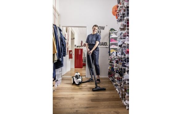 - Άλλα χαρακτηριστικά εξοπλισμού της ηλεκτρικής σκούπας είναι το φίλτρο HEPA, το οποίο φιλτράρει αξιόπιστα τη λεπτεπίλεπτη βρωμιά, όπως γύρη ή άλλα σωματίδια που προκαλούν αλλεργίες, και η πρακτική θέση στάθμευσης.