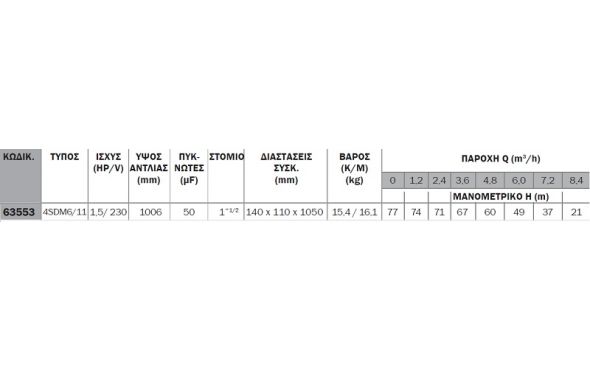 KRAFT - 4SDM6/11 Υποβρύχια Αντλία 1.5Hp Υψηλής Παροχής