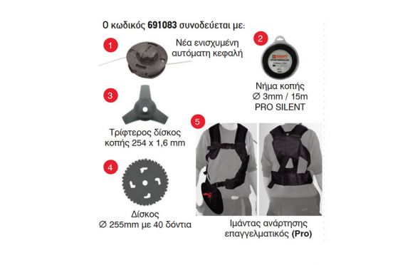 KRAFT - 691083 Θαμνοκοπτικό Βενζινοκίνητο Premium Line με Αντιδόνηση 62cc/3.46hp