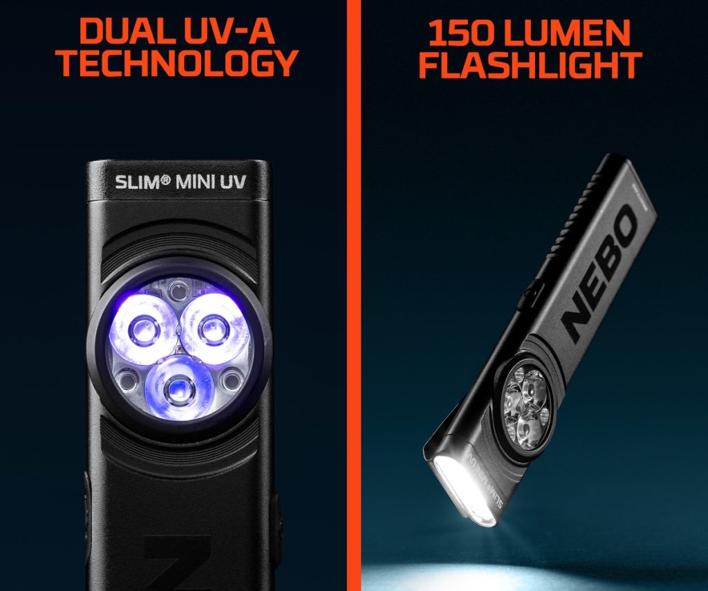 - Φωτίστε το αόρατο με τον φακό SLIM MINI UV, ο οποίος χρησιμοποιεί τεχνολογία Dual UV-A για να αναμίξει δύο UV μήκη κύματος σε μία πηγή φωτός.