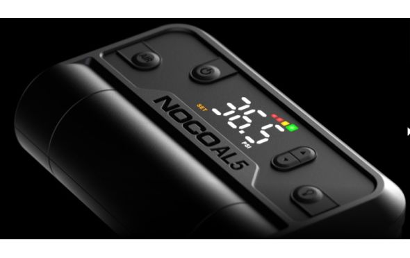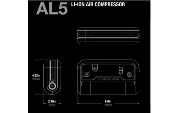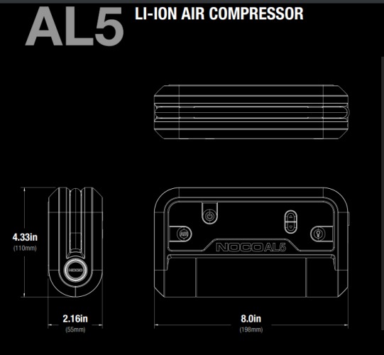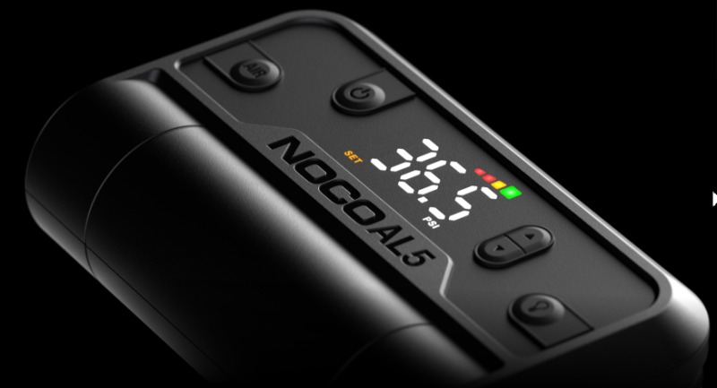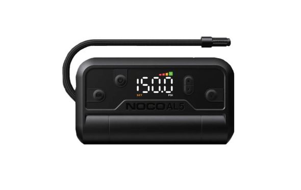 - Παρουσιάζουμε το NOCO AL5, έναν φορητό αεροσυμπιεστή 12 volt, 5 amp με κινητήρα 90 watt και μέγιστη πίεση 130 PSI.