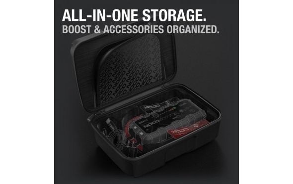 - Το εξωτερικό περίβλημα EVA από καουτσούκ προσφέρει προστασία από υγρασία, κρούσεις, σκόνη και άλλους περιβαλλοντικούς παράγοντες, ενώ το χυτευμένο εσωτερικό ταιριάζει τέλεια, αποθηκεύει και προστατεύει τους αντίστοιχους εκκινητές μπαταριών λιθίου NOCO Boost X UltraSafe - GBX75 (πωλείται χωριστά).