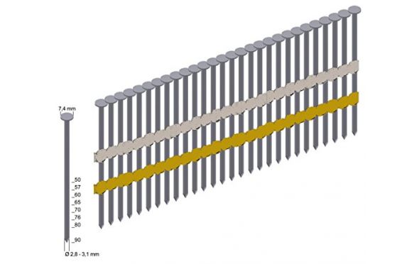 | Πρόκα με στρογγυλό κεφάλι σε δεσμίδα με πλαστική σύνδεση |