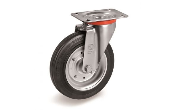 Κατάλληλο για καρότσια με ελαφρα φορτια, επίσης σε δαπεδα με ανωμαλω εδαφος. εσωτερική και εξωτερική χρηση.Συνιστατε σε εφαρμογές: καροτσάκια εργαλείων, καροτσάκια για βιομηχανική χρηση, μικρές κινητές σκαλωσιές, καδους κτλ.Ρόδα:ελαστικό πέλμα.Βάση:γαλβανιζε.