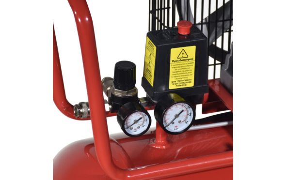 Επαγγελματικός αεροσυμπιεστής με ιμάντα, έχει δικύλινδρη ελαιολίπαντη κεφαλή, λειτουργεί σε χαμηλές στροφές, ψύχεται καλύτερα, έχει λιγότερες φθορές και είναι κατάλληλος για χρήση σε επαγγελματικές εφαρμογές. Επαγωγικός ηλεκτροκινητήρας Μονοφασικός S1 - 230Volt - 50 Hz - 12A - IE2 - IP44 - Class F - 2850 rpm - 60 μF/300μF με θερμικό 15 Α . Οι αεροσυμπιεστές στα πλαίσια διασφάλισης ποιότητας και ελέγχου ενδέχεται να περιέχουν λάδια .Πριν την πρώτη χρήση ελέγξτε μέσω της γυάλινης ένδειξης στάθμης για την ύπαρξη ή μη λαδιού στο χώρο κάρτερ του αεροσυμπιεστή , σε διαφορετική περίπτωση προσθέστε λάδι μέχρι την μέση της ένδειξης στάθμης λαδιού .