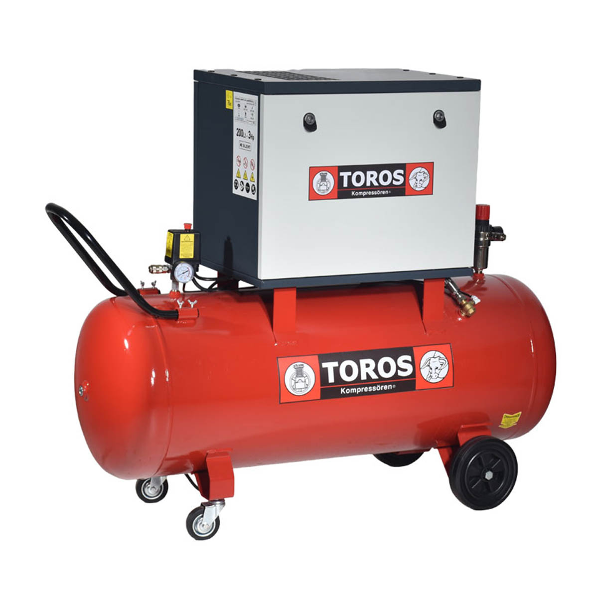 Toros - Αεροσυμπιεστής Ηχομονωμένος (Silent) Κλειστού Τυπου Πλήρης με Αεροφυλάκιο 200Lt - 3.0Hp