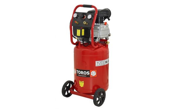 - Ελαιολίπαντος μονοκύλινδρος αεροσυμπιεστής κάθετος μονομπλόκ 50lt Toros με ισχύ 2,5 ΗΡ.