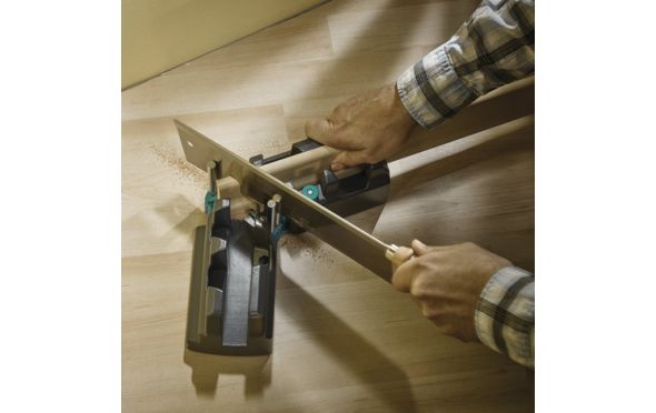 - Αυτόματη μεταφορά της σωστής γωνίας στο πριόνι χάρη στους ενσωματωμένους πείρους οδήγησης για το πριόνι χειρός (φαλτσογωνία).