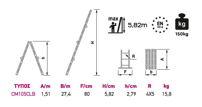 • Η σκάλα παρέχει όλες τις ευρωπαϊκές προδιαγραφές EN131.