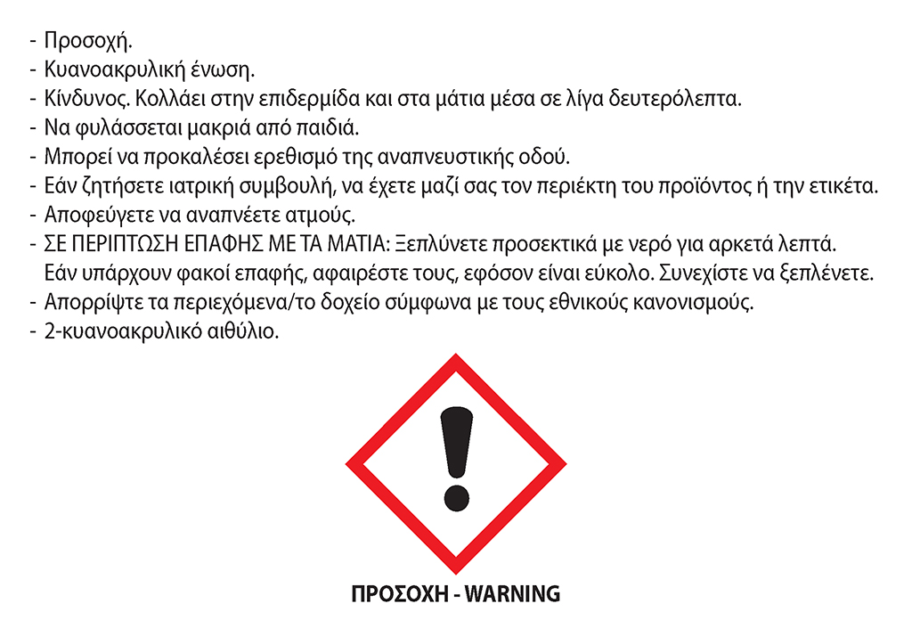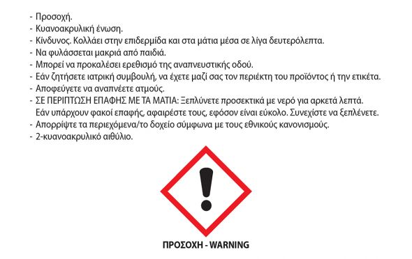 - Κολλά μέταλλα, λάστιχο, πορσελάνη, ξύλο, δέρμα, χαρτόνι, κοσμήματα, και πολλά πλαστικά