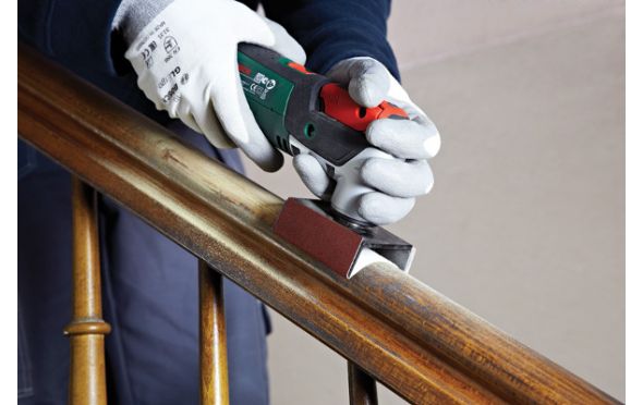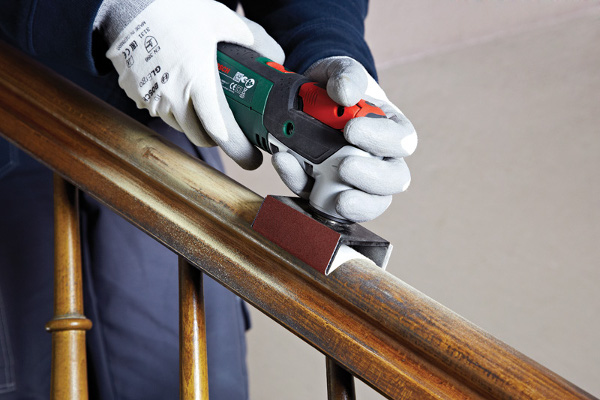 - Η πλάκα προορίζεται για λείανση στρογγυλεμένου ή καμπυλωτού ξύλου, μπογιάς ή βερνικιού και σύνθετων επιφανειών ενισχυμένων με ίνες.