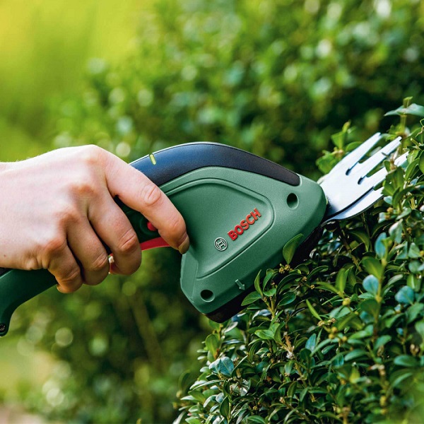 Ένα εργαλείο για να τριμάρετε και να διαμορφώσετε τις άκρες του γρασιδιού και των θάμνων σας. Εναλλαγή από τριμάρισμα γρασιδιού σε τριμάρισμα θάμνου άμεσα. Το σετ Bosch EasyShear διαθέτει μία λάμα για τριμάρισμα και συντήρηση θάμνων και μία λάμα κοπή γρασιδιού. Σύστημα εναλλαγής λεπίδων χωρίς εργαλεία. Για χρήση με ένα χέρι, ελαφρύ εργαλείο κήπου - ιδανικό για τις τελευταίες πινελιές. Ένδειξη Μπαταρίας LED - Η εύχρηστη ένδειξη φόρτισης μπαταρίας LED έχει 2 απλά βήματα - το φως είναι πράσινο όταν το εργαλείο είναι αναμμένο και κόκκινο όταν η μπαταρία είναι χαμηλή. Ο συμπαγής και ελαφρύς σχεδιασμός 530g επιτρέπει μια απλή λύση αποθήκευσης που σημαίνει ότι το εργαλείο είναι πάντα έτοιμο προς χρήση. Φόρτιση με Micro-USB.