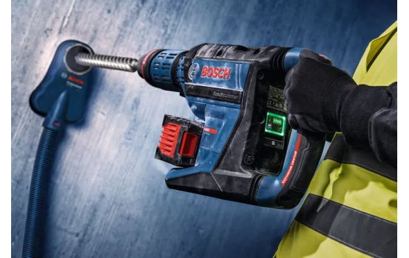 Το περιστροφικό πιστολέτο EXPERT EXBH18V-45 SDS max προσφέρει εξαιρετική ταχύτητα για την εργασία σου – έως και 2 φορές την ταχύτητα τρυπήματος του Professional GBH 18V-36 C*. Εξαιρετική απόδοση με ενέργεια κρούσης 12,5 J χάρη στην τεχνολογία BITURBO brushless, με έναν μεγάλης απόδοσης κινητήρα και σύστημα μετάδοσης της κίνησης, που έχουν σχεδιαστεί για την αξιοποίηση της εξαιρετικής ισχύος των μπαταριών EXPERT. Με μόνο μια φόρτιση της μπαταρίας EXPERT EXBA18V-150, μπορείς κάνεις έως και 33 τρύπες, βάθους 150 mm με ένα τρυπάνι 25 mm. Επιπλέον, αυτό είναι το ελαφρύτερο εργαλείο στην κατηγορία του, με βάρος μόλις 8 kg (χωρίς μπαταρία), όλα χάρη στον ελαφρύ κινητήρα και το περίβλημα από κράμα μαγνησίου.Αυτό το περιστροφικό πιστολέτο προορίζεται για τρύπημα και καλέμισμα σε μπετόν, τοιχοποιία,...