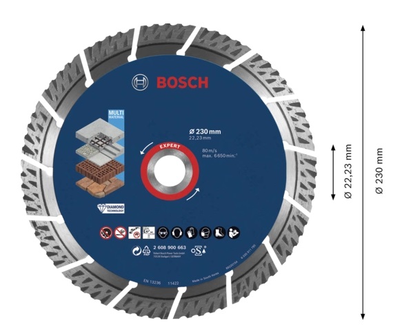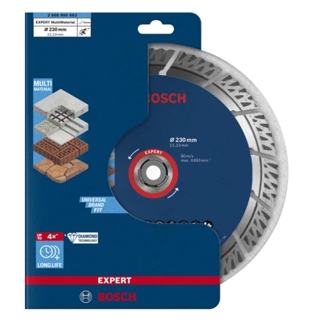 - Με αυτόν τον συνδυασμό βέλτιστων κόκκων διαμαντιού και προηγμένου σχεδιασμού, ο διαμαντόδισκος κοπής Bosch EXPERT MultiMaterial προσφέρει απαράμιλλη μακροζωία.