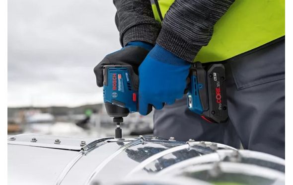 Για ομαλό βίδωμα σε ξύλο και λαμαρίνα, χρειάζεται ένα εργαλείο που να συνδυάζει την ισχύ με τον έλεγχο. Το GDR 18V-220 C Professional με εξαγωνική υποδοχή ¼" είναι ένα συμπαγές παλμικό κατσαβίδι με υψηλή ροπή στρέψης με πρόσθετες λειτουργίες. Με μήκος κεφαλής 113 mm, είναι εύχρηστο, ιδιαίτερα στην εργασία σε στενά σημεία. Ισχυρός κινητήρας χωρίς ψήκτρες με έως και 3.400 σ.α.λ., τρεις ταχύτητες και υψηλή ροπή 220 Nm, καθιστούν την εργασία γρήγορη και ελεγχόμενη. Ρυθμιζόμενες λειτουρ. βιδώματος για αποφυγή ζημιάς στις κεφαλές των βιδών και στα επεξεργαζόμενα κομμάτια, επιβραδύνοντας (Α) ή απενεργοποιώντας (Β) το παλμικό κατσαβίδι. Πρόσθετες λειτουρ. ρυθμιζόμενες μέσω της εφαρμογής (app) Bosch Toolbox. Τοποθέτηση εξαρτημάτων μόνο με το ένα χέρι. Διπλό ρουλεμάν για...