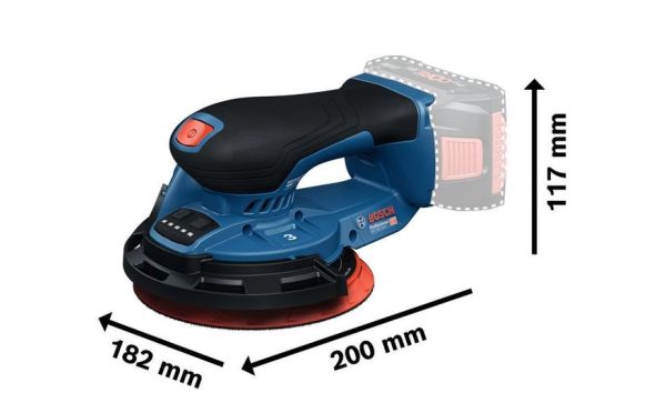 - Το GEX 18V-150-3 Professional διαθέτει δοχείο σκόνης, επιλογή ταχύτητας, ένδειξη κατάστασης της μπαταρίας και δακτύλιο προστασίας, καθώς και πέλμα λείανσης 150 mm.