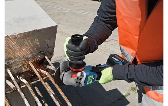 - Το GWS 18V-15 SC Professional διαθέτει επίσης σταθερή ταχύτητα, προστασία υπερφόρτωσης, προφυλακτήρα χωρίς κλειδί, παξιμάδι σύσφιγξης χωρίς κλειδί, προστασία επανεκκίνησης, απαλό ξεκίνημα και Vibration Control.