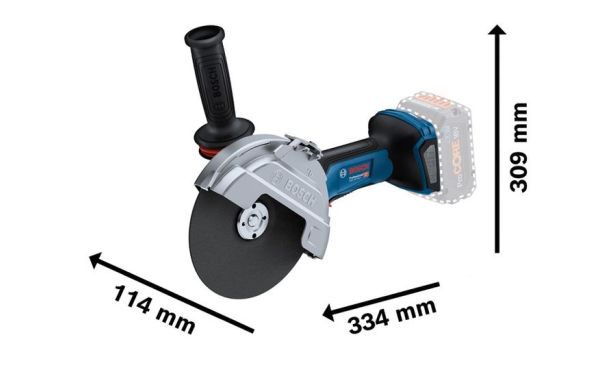 - Με τον δίσκο 180 mm και τη μικρή κεφαλή μετάδοσης, το GWS 18V-180 P επιτυγχάνει το ίδιο βάθος κοπής με έναν μεγάλο γωνιακό λειαντήρας 230 mm αλλά έως και 35 % λιγότερο βάρος.
