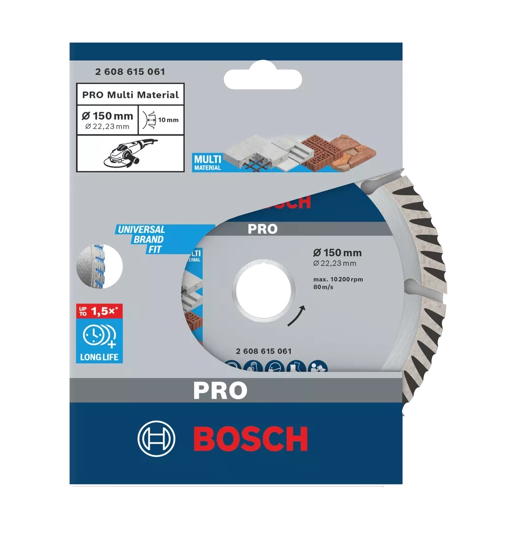 - Τα προηγμένα χαρακτηριστικά σχεδιασμού εξασφαλίζουν ότι ο PRO Multi Material διαρκεί περισσότερο από τους τυπικούς διαμαντένιους δίσκους.
