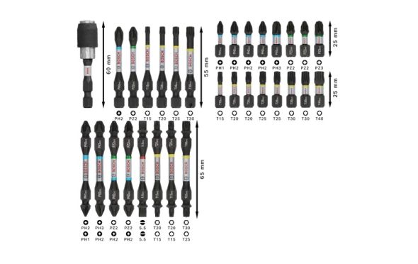Κατσαβιδόλαμα 25 mm: PH1, PH2 (3x), PH3, PZ2 (2x), PZ3, T15, T20 (2x), T25 (2x), T30 (2x), T40