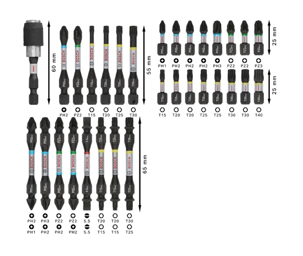 Κατσαβιδόλαμα 55 mm: PH2, PZ2, T15, T20, T25, T30