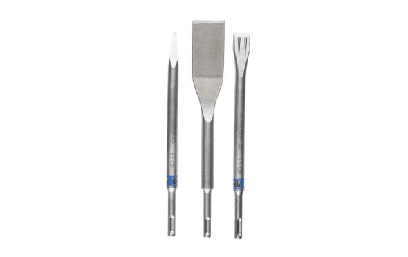 Το Σετ καλεμιών SDS plus, 3 τεμαχίων, αποτελείται από ένα πλατυκάλεμο, ένα βελόνι και ένα καλέμι πλακιδίων για διάφορες εφαρμογές ανακαίνισης και αποκατάστασης σε πολλά υλικά.
