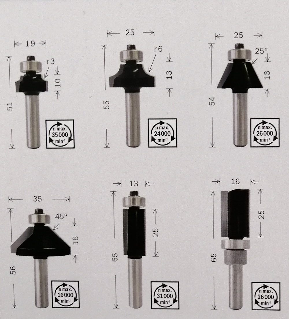 - BOSCH - Σετ Φρέζες για Ρούτερ για προφίλ 6mm - 6 Τεμαχίων.