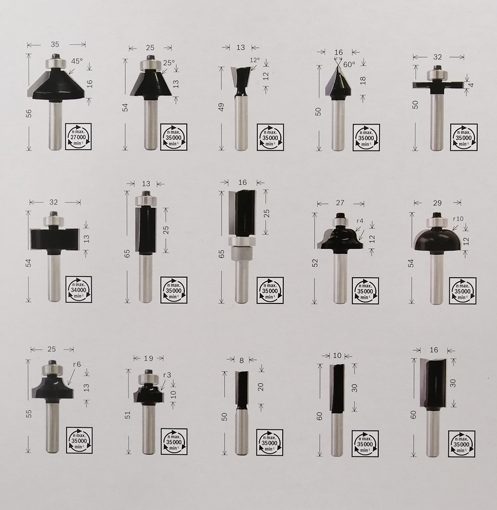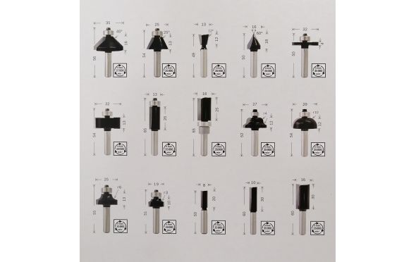 - BOSCH - Σετ Φρέζες για Ρούτερ διάφορες 8mm - 15 Τεμαχίων.