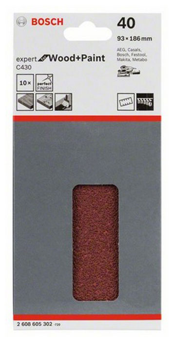 Bosch - Σετ Φύλλων Λείανσης 10 τεμαχίων K40 93 χ 186