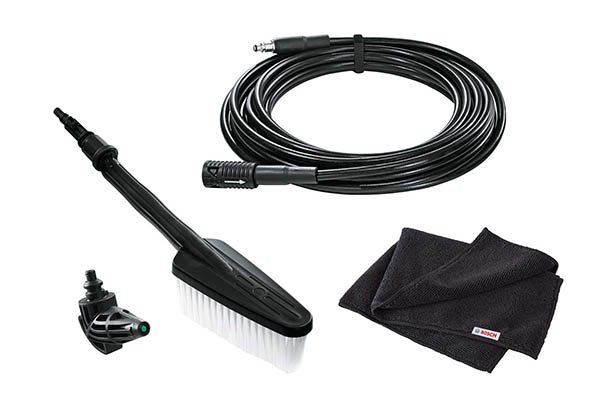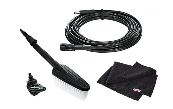 Για τα μοντέλα υδροπλυστικών της Bosch: EasyAquatak 110/120, UniversalAquatak, AQT 33-10, AQT 33-11, AQT 35-12, AQT 37-13, AQT 40-13, AQT 42-13 Σετ καθαρισμού αυτοκινήτου: Ακροφύσιο 90o, βούρτσα πλυσίματος, εύκαμπτος σωλήνας επέκτασης 6m, πανί μικροινών.