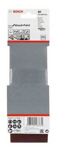 BOSCH - Σετ Ταινιών Λείανσης 3 τεμαχίων 75x457mm - K80