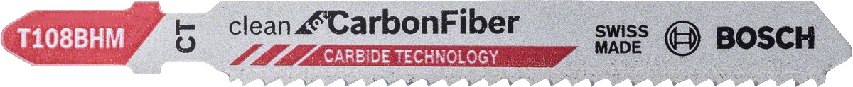 Η Λάμα σέγας T 108 BHM Clean for Carbon Fiber είναι ιδιαίτερα ανθεκτική κατά τη δημιουργία καθαρών ευθειών κοπών σε πλαστικό. Η τροχισμένη οδόντωση έχει σχεδιαστεί για παρατεταμένη χρήση σε τραχιά πλαστικά σύνθετα υλικά, ενώ η γεωμετρία δοντιών της έχει σχεδιαστεί για αποτροπή αποκόλλησης στρωμάτων κατά την κοπή ανθρακοϊνών. Επιπλέον, η οδόντωση είναι συγκολλημένη σε ένα πολύ ελαστικό σώμα από ανθρακοχάλυβα με τεχνολογία καρβιδίου, που επιτρέπει την κοπή πολύ σκληρών υλικών, π.χ. τραχιά πλαστικά σύνθετα υλικά όπως ανθρακοΐνες και σύνθετα υλικά υαλονημάτων. Διαθέτει μικρό βήμα δοντιού (2,2 mm) και κόβει φύλλα ανθρακοϊνών και υαλονημάτων, προφίλ και συμπαγή νήματα με πάχος έως 20 mm. Για χρήση με σέγες και συστήματα σύσφιξης με στέλεχος Τ.