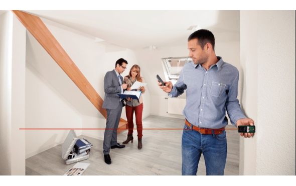 - Το UniversalDistance 40C C δε μετρά μόνο αποστάσεις έως και 40 μέτρα με ακρίβεια λέιζερ αλλά επίσης παρέχει τις διαστάσεις επίπλων με μια ματιά.