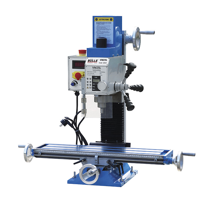 BULLE - Φρεζοδράπανο Πάγκου Μεταβλητης Ταχύτητας 1100W 25mm.Ρύθμιση Στροφών με Ροοστάτη, Γραναζωτό Κιβώτιο Μετάδοσης Κίνησης για Μεγαλύτερη Ροπή. Με κινητήρα Brushless. Κλίση κεφαλής δεξιά-αριστερά ±90ο. Πρισματική κολώνα. Κιβώτιο με ηλεκτρονική ρύθμιση στροφών. Με ψηφιακό οδηγό βάθους ακριβείας 0.01mm.